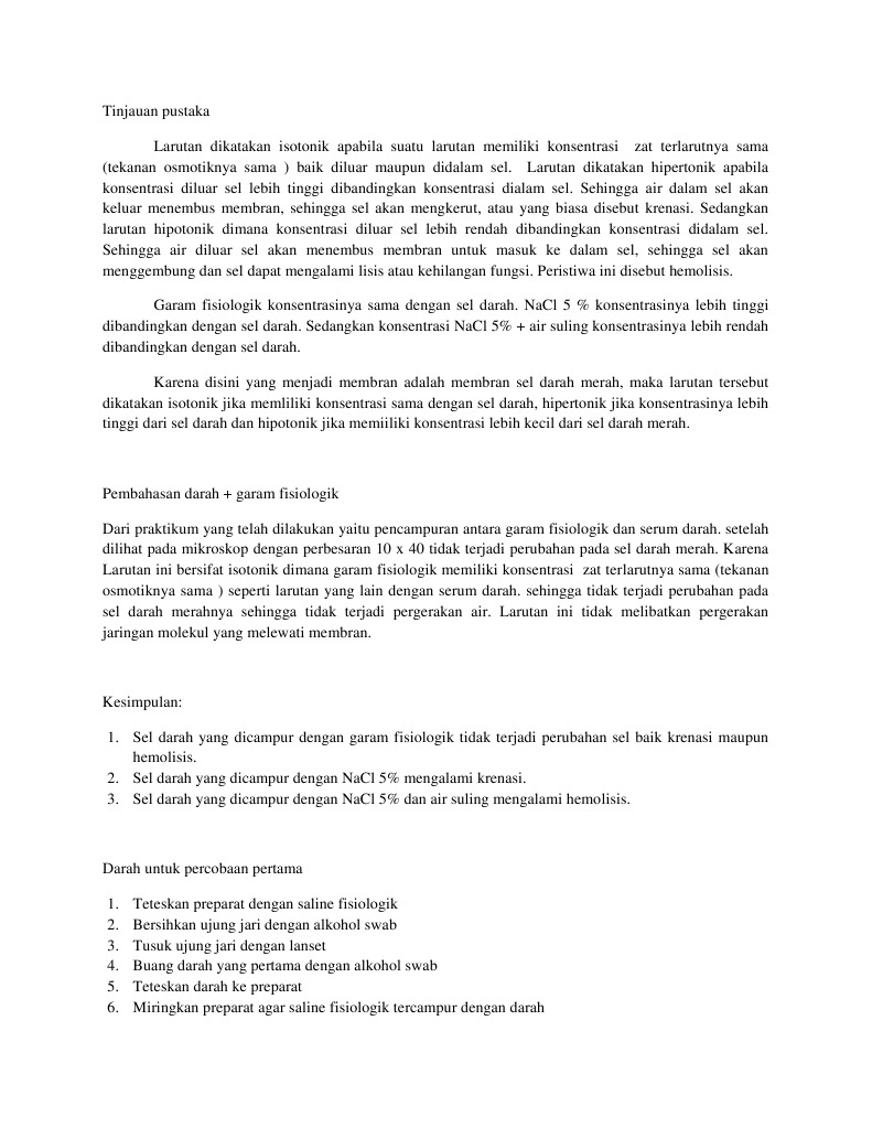 Bahan Laporan Praktikum from imgv2-2-f.scribdassets.com Maybe you would like to learn more about one of these? Check spelling or type a new query. We did not find results for: Sel darah merah mengalami hemolisis.
